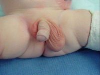 男婴在出生后单侧或双侧睾丸未降至阴囊内而停留在其正常下降过程中的任何一处。也就是说阴囊内没有睾丸。这种症状我们称之为小儿隐睾。小儿隐睾对患者易造成很大的危害。严重影响生育、容易发生恶变、容易发生损伤、容易让患者产生心理障碍。